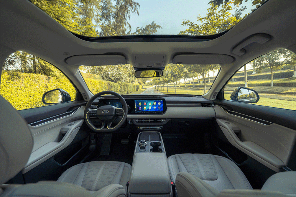 انطلاقًا من سمعتها المرموقة في رحابة المقصورة، تُلبي فورد توروس الجديدة احتياجات العائلات بكفاءة عالية، إذ توفر مساحة تخزين واسعة ومقصورة داخلية رحبة تناسب التنقلات اليومية والرحلات الطويلة على حد سواء. كما تضمن المقاعد المُهواة، المتوفرة بدءًا من فئة تريند، راحة مثالية في جميع الظروف المناخية، بينما يُعزز السقف البانورامي المزدوج المتوفر إحساس المقصورة بالرحابة والفخامة.